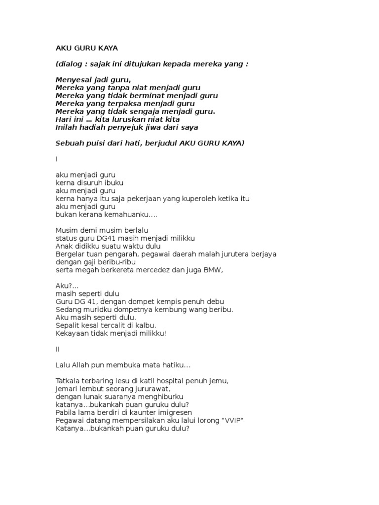 Download Contoh Puisi Pendidikan Guruku Images. Sekolah sendiri adalah sesuatu yang penting dalam kebutuhan masyarakat indonesia. Di dalam kegelapan, engkaulah lenteraku dalam kehausan, engkaulah embun.