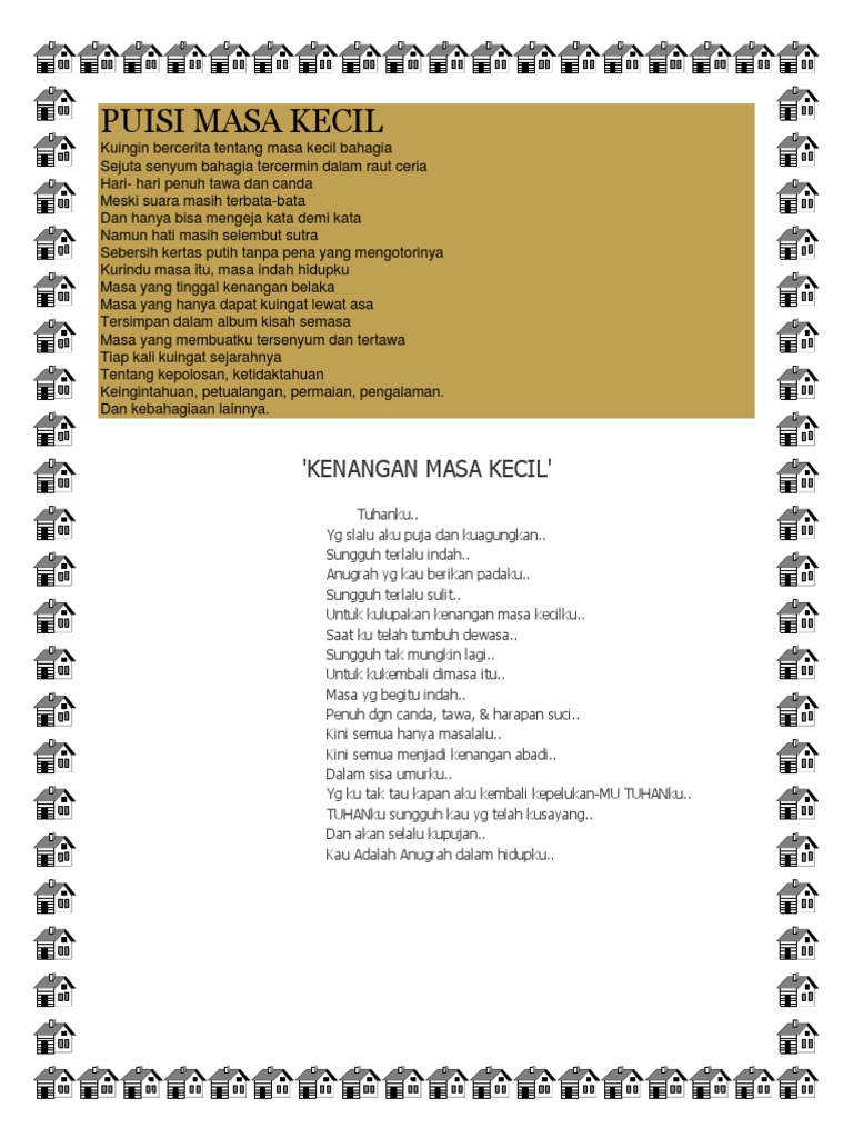Puisi Kenangan Masa Kecil - Kumpulan Puisi Terbaik from 1.bp.blogspot.com Bagaimana jika kita ulang masa itu lagi, sahabat telah lama kita tak bermain dan tertawa bersama karena jarak itu menghalangi kita untuk sering bersama. Puisi pendek untuk indonesia tercinta. Senyummu terlalu kekal untuk kenal duka.