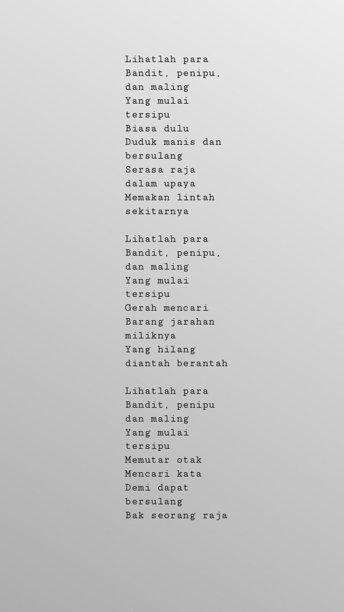 Simak berbagai contoh puisi pendek tantang berbagai topik seperti kehidupan, cinta, lingkungan, alam, persahabatan dalam bahasa indonesia dan bahasa inggris yang dikumpulkan dari berbagai sumber berikut ini. Contoh puisi pendek memang dapat mewakili isi hati daripada menumpahkan dalam hal yang negatif. 1.15 contoh puisi rakyat pantun pendek. Mantra merupakan salah satu susunan kata atau kalimat khusus yang isinya mengandung arti kekuatan ghaib dan susunan kata berunsur puisi mantra terdiri atas beberapa rangkaian kata yang memiliki irama.