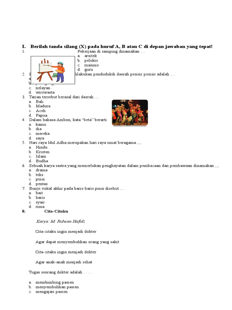 Puisi Cita Citaku Ingin Jadi Dokter - KT Puisi from imgv2-1-f.scribdassets.com Berikut adalah contoh puisi yang bisa di jadikan inspirasi untuk kamu dan telah disusun dengan lengkap. Berikut kunci jawaban tema 6 kelas 4 halaman 65: Supaya kalau aku sakit, tidak perlu pergi ke dokter.